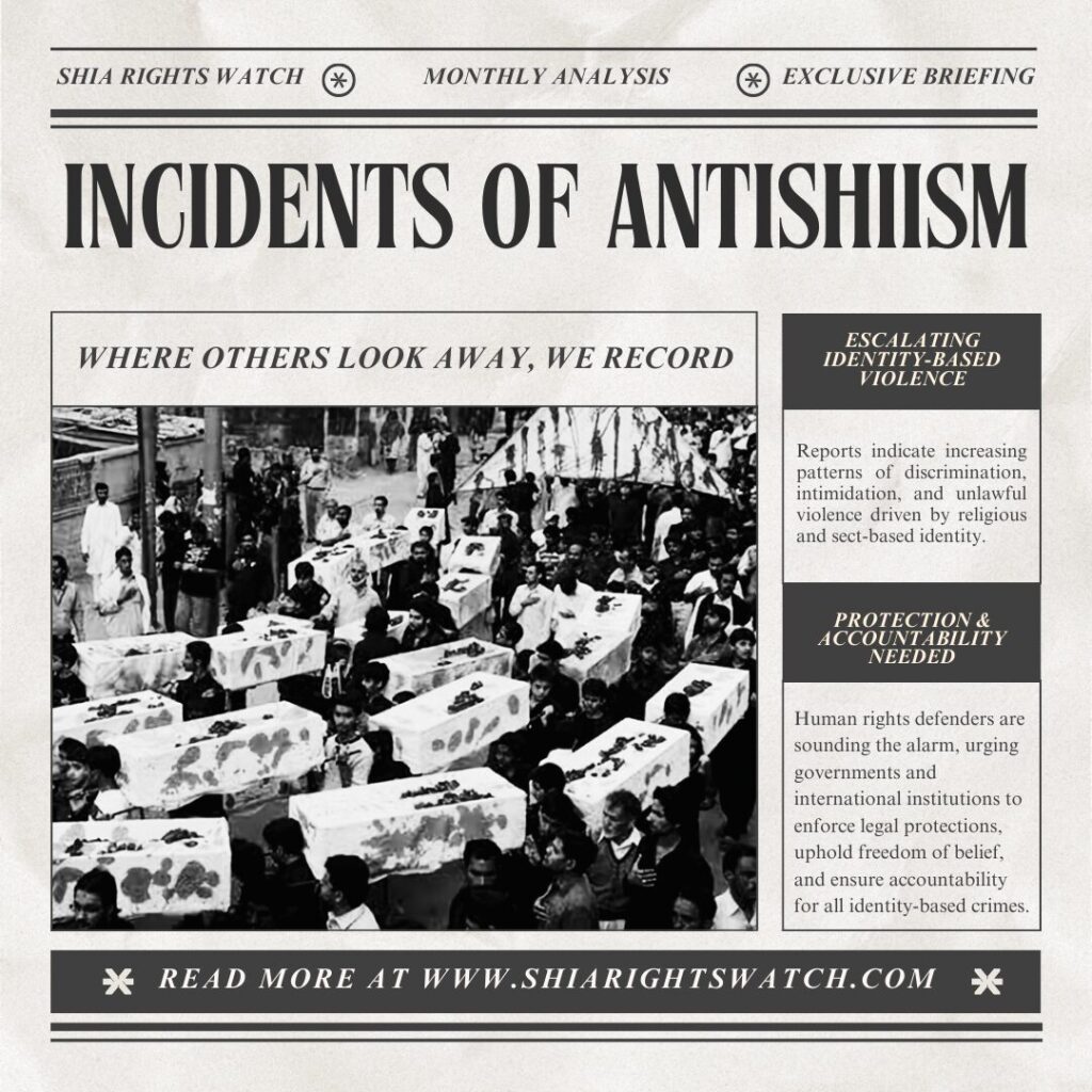 Shia Rights Watch issues its monthly report highlighting the most prominent human rights violations committed against Shia Muslims from January 1st to February 1st, 2026.