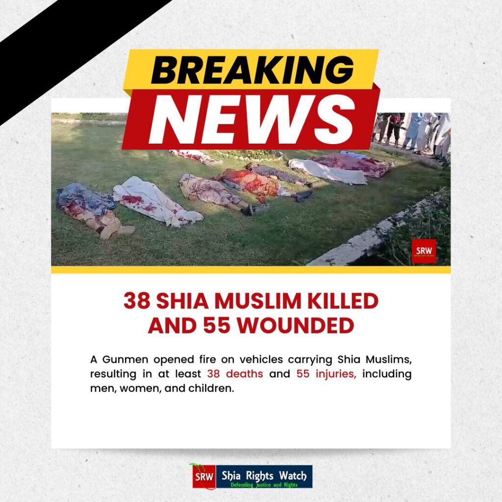 The devastating attack in Peshawar, Pakistan, where armed terrorists opened fire on vehicles carrying Shia Muslims, claimed at least 38 lives and injured 55 others, including men, women, and children. This massacre is not an isolated event but part of an ongoing pattern of violence against the Shia Muslim community in Pakistan. Shia Rights Watch (SRW) calls for immediate action to address this humanitarian crisis and urges the international community to exert pressure on the Pakistani government to end anti-Shia hate crimes.